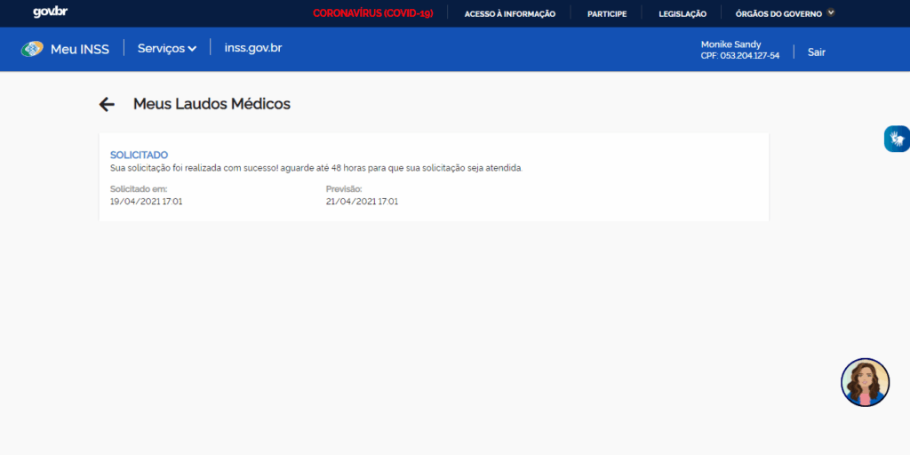 Basta o trabalhador se cadastrar no MEU INSS, entrar no serviço “Laudos Médicos” e solicitar a cópia que aparecerá esta mensagem: